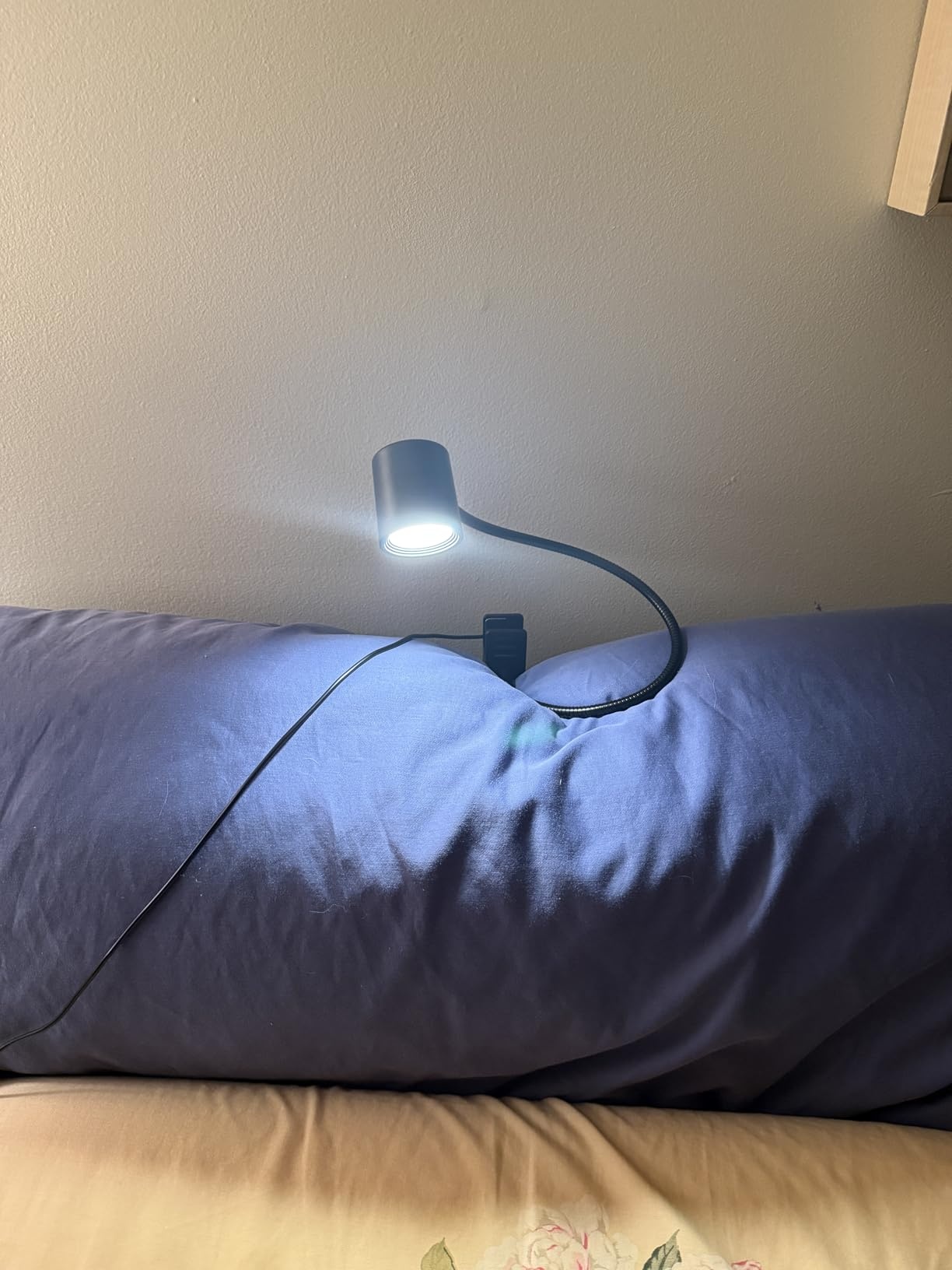 Sturdy clamp attaches securely to desks, shelves, or headboards – frees up surface space and enables flexible placement without permanent installation.